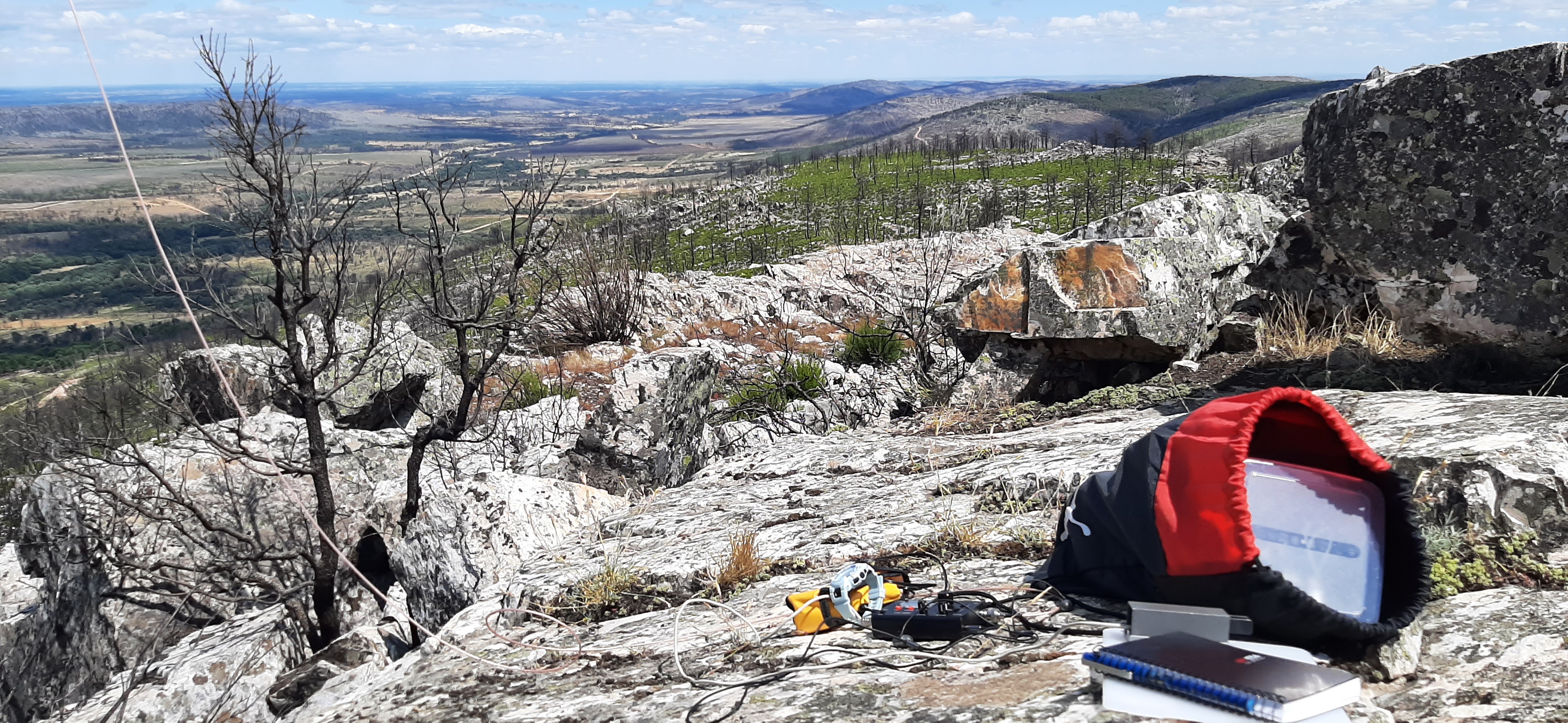 Lo primero es buscar dónde apoyar la antena. Un arbusto en la cima tiene un tronco suficientemente robusto para soportar la caña, incluso con algo de viento. Un extremo de la antena queda amarrado a la vieja antena de televisión y el otro a una piedra. Encuentro un lugar muy apropiado para acomodarme.